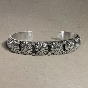 Contemporary Navajo jewelry demonstrates dynamism and innovation, as modern artists build on traditional techniques and imagery. Today’s top Navajo jewelry artists pay homage to the skills of the past, while being open to utilizing metals and stones gleaned from around the world. Often working with simple tools like stamps and hammers, they continue to produce new and original designs in bracelets, rings, necklaces, earrings, and numerous other new classics in sterling silver, turquoise, and a variety of beautiful stones.